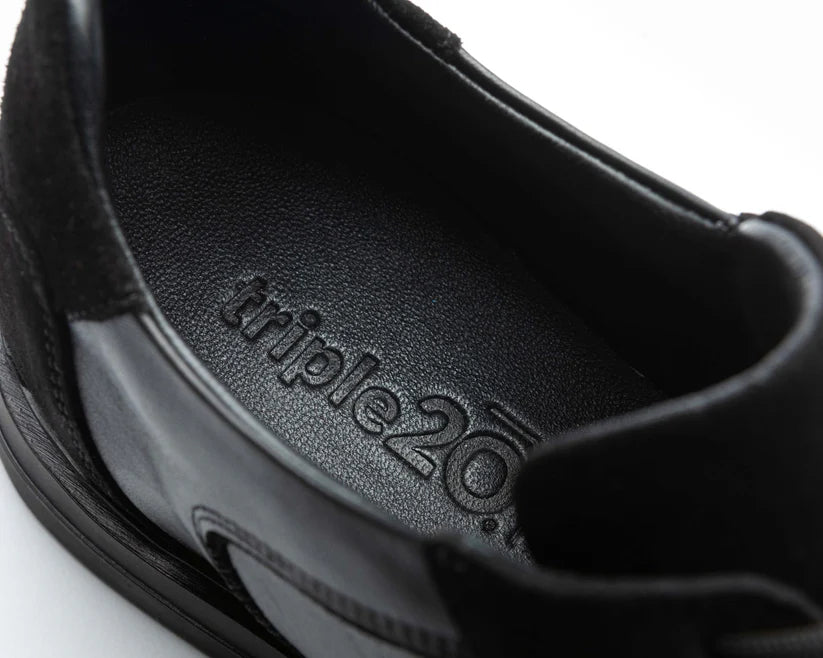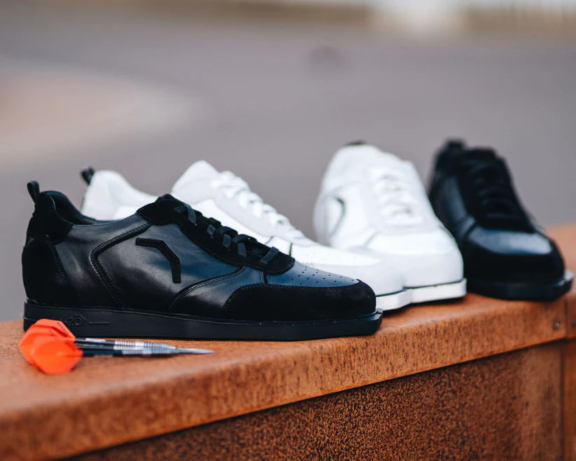 triple20® dartsshoes are a unique world novelty for more accuracy – step by step and throw by throw. The special design of our outsole with its front angles and target points is protected worldwide and guarantees millimetre-precise alignment with the oche and exactly reproducible positioning when throwing. Being edgy never felt so good!