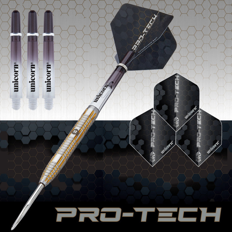 Unicorn Pro-Tech Range combines the preferred grip and barrel shape required to win at the highest level of darts with the latest in cutting-edge technology to propel the darts to new heights.